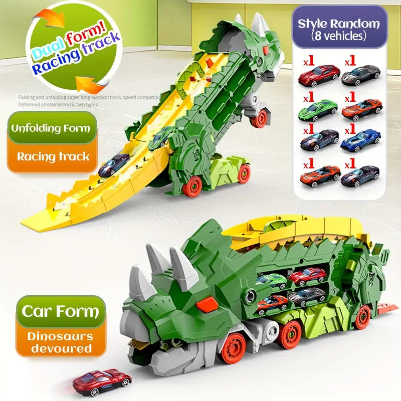 Camión de transporte de dinosaurios con plataforma deslizante plegable