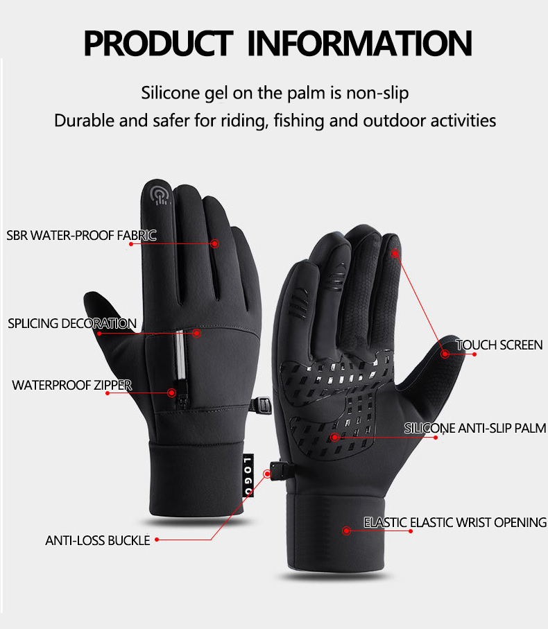 Thickened winter men's cycling gloves, with a touchscreen for bicycles, waterproof and slip-resistant.